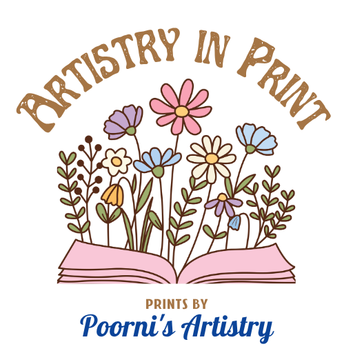 Poorni’s Artistry is the studio I built to give that practice a home. It is where the visual dimensions of my work live as a creative brand—original art, handcrafted collections, and a publishing house for the young voices I am committed to bringing into the world.